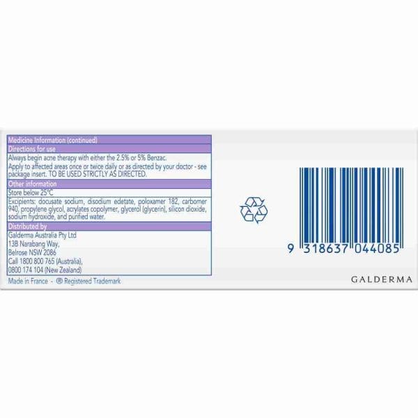 Active: Benzoyl Peroxide 50 mg/g Inactives: Docusate Sodium, Disodium Edetate, Poloxamer 182, Carbomer 940, Propylene Glycol, Acrylates Copolymer, Glycerol, Silicon Dioxide And Purified Water, Sodium Hydroxide To Adjust pH.