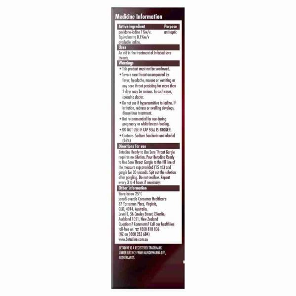 Betadine Ready To Use Sore Throat Gargle 120ml Artg Id 50838