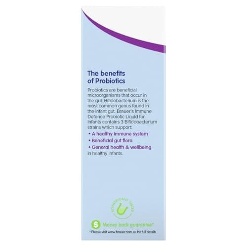 Probiotics are beneficial microorganisms that occur in the gut. Bifidobacterium is the most common genus found in the infant gut. Brauer’s Immune Defence Probiotic Liquid for Infants contains 3 Bifidobacterium strains; BB536, M-16V and M-63, which support: