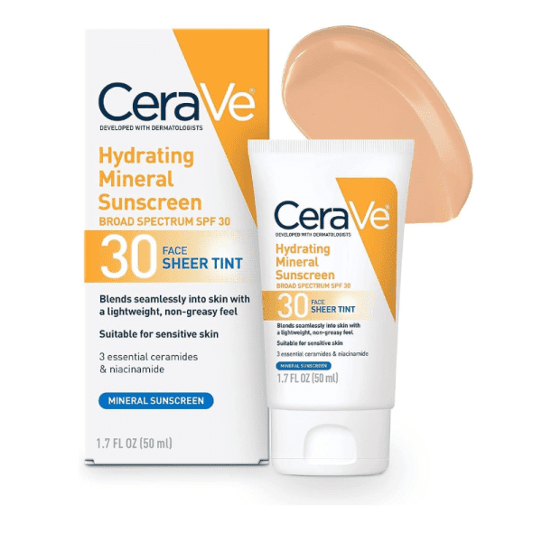 Cerave Tinted Sunscreen With SPF 30 | Hydrating Mineral Sunscreen With Zinc