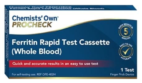 The Chemists’ Own Procheck Ferritin Rapid Test is a quick, accurate and easy to use test to screen and monitor your ferritin levels at home.