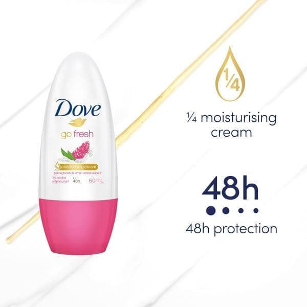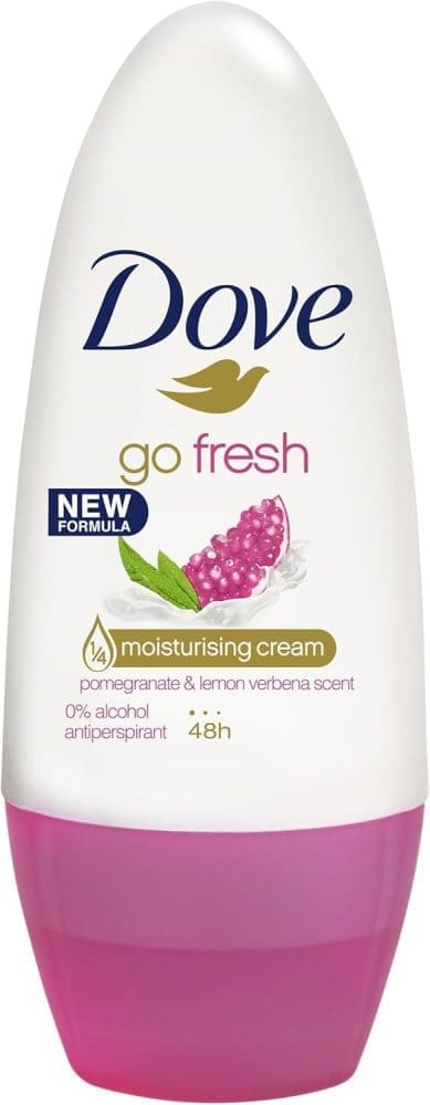 - Dove Go Fresh Pomegranate Antiperspirant Deodorant keeps you fresh for up to 48 hours, so you can take on your day feeling clean and confidence. Our Go Fresh deodorants also contain 1/4 moisturising cream to help delicate underarm skin recover from irritation caused by shaving.