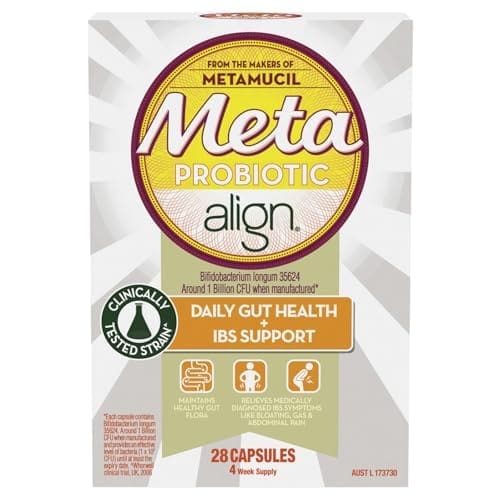 Parental supervision is recommended for use of Meta Probiotic Align by children. We recommend that you keep Meta Probiotic Align out of reach of children.If digestive symptoms persist, see your healthcare professional. You may experience temporary changes in bowel habits as you begin probiotic supplement intake. Contains casein (milk protein). This product is gluten-free