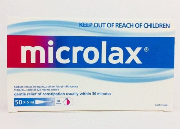 - Microlax Enema delivers its effect on constipation fast (within 30 min) with a good level of control. The 5 ml micro-enema can be inserted gently into the rectum and its use is easy, hygienic and discreet. The active substances sodium citrate dihydrate, sodium lauryl sulfoacetate and sorbitol release the water compounded in the stool, and loosens it up. Predictable relief is obtained within 30 minutes.