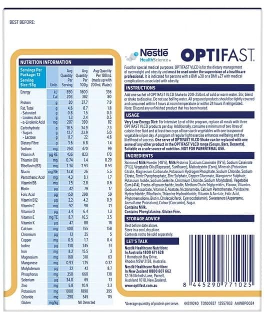 Optifast Vlcd Shk Vanilla 53 g 12Pk*3 Optifast Vlcd Shakes are part of a nutritionally complete, very low calorie diet program. High in protein and contains essential nutrients to help assist with safe and effective weight loss on the Optifast Program.