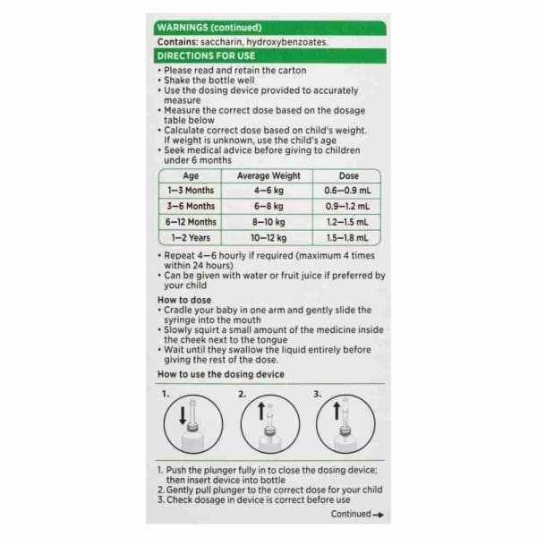 Age: 1-3 Months, Average Weight: 4-6 kg, Dose: 0.6-0.9 mlAge: 3-6 Months, Average Weight: 6-8 kg, Dose: 0.9-1.2 mlAge: 6-12 Months, Average Weight: 8-10 kg, Dose: 1.2-1.5 mlAge: 1-2 Years, Average Weight: 10-12 kg, Dose: 1.5-1.8 ml