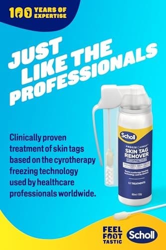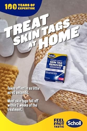 Scholl Freeze Away Skin Tag Remover is a Cryogenic skin tag removal solution, safe for in -home application. It is clinically proven to remove skin tags in as little as one treatment. Remove bothersome and unsightly skin tags in the privacy of your own home with Scholl’s easy to use, one-handed precision applicator. Leveraging the same cryotherapy freezing method used by doctors worldwide, you can remove skin tags in 5 simple steps, it only takes 40secs! After treatment, most skin tags will fall off in about two weeks.