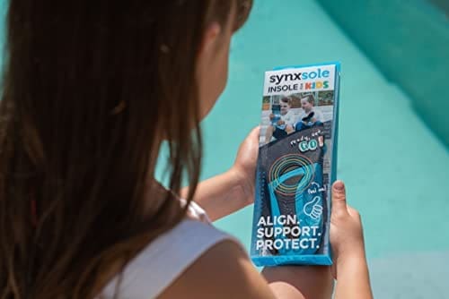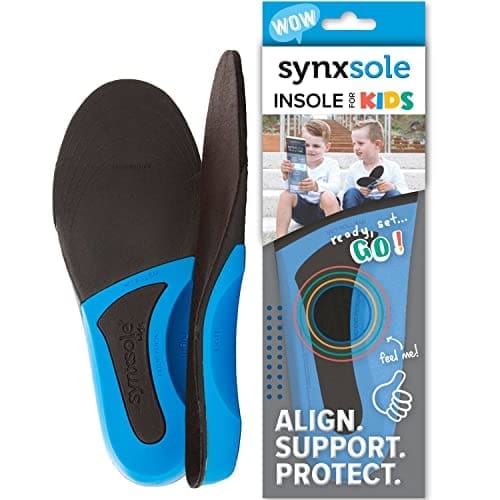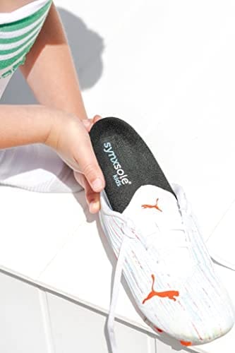- SynxSole childrens insoles help support your child through the changes their growing feet endure, providing optimal cushioning and support for their feet to effectively manage many common childhood foot conditions. Our pain relief for plantar fasciitis was developed to help support your child through the changes their growing feet endure, support a full range of activities, fit into a wide range of footwear including school, casual and sporting shoes. These flat feet insoles provide optimal cushioning and support for your child’s feet to effectively manage many common conditions including Sever’s disease, growing pains, knee pain, arch pain, heel pain and leg pain. SynxBody sport insoles are designed by Australian podiatrists. Arch Support FOR Kids Features: Shock absorption increases comfort and shock absorption while maintaining flexibility, Slimline design fits into a wider range of footwear due to reduced thickness/bulk, Anti-slip cover reduces slip within the shoe and maximizes comfort, Trim to size for an accurate fit into your footwear, Cut to Fit instructions, Low arch height allows the arch of the foot to pass through its normal range of motion, Inconspicuous