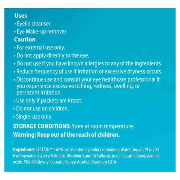 - Systane Lid Wipes offer a gentle cleansing wipe as part of a daily eyelid care regimen. These premium pre-moistened wipes remove debris and make-up that can cause eye irritation.