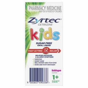 Zyrtec Cetirizine Kids Sugar Free Oral Liquid Bubblegum Flavour 60ml